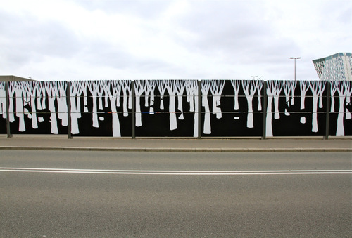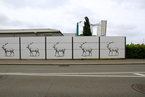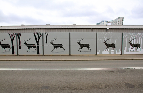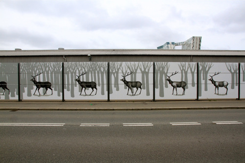 La artista urbana Hyuro ha creado este mural en Copenhagen con un alce en diferentes posiciones. Pareciera que el trabajo de Hyuro es ordinario pero se trata de una tira animada, quien observe el mural desde su auto en movimiento podrá ver caminar al alce a través de un bosque.